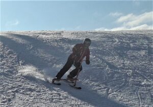 Wreszcie jest lekki, wspaniały, mocno narciarski i karwingowy Skki Trikke. Swobodna jazda na stoku, bez irytujących twardych butów, bez bólu kolan i nóg. Kobiety odnajdą tutaj delikatność sportu zimowego.