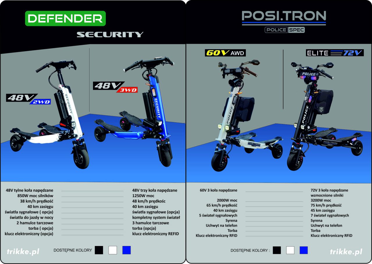 Na szczęście pojawiły się specjalistyczne elektryczne Trikke , które stanowią idealny wybór dla nowoczesnej firmy Security czy Policji. W tych niespokojnych i trudnych czasach bycie społecznym obrońcą lokalnych społeczności jest jeszcze ważniejsze. Policyjny/Ochroniarski Trikke został zaprojektowany w taki sposób, aby pracownicy branży ochrony byli jak najbardziej skuteczni i wydajni. W zakresie patrolowania. W zakresie innych obowiązków z zakresu bezpieczeństwa. Ważną cechą patrolowego Trikke jest to, że jadący na nim pracownik ochrony jest bardzo pozytywnie postrzegany przez społeczeństwo.