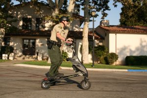“Lubię używać Trikke, ponieważ jestem wyższy i widzę więcej ponad linią dachów samochodów”, powiedział Dusel. “Łatwiej jest dostrzec, kiedy dzieje się coś nie dobrego w mojej okolicy”. Policjant Turlock Joe Dusel