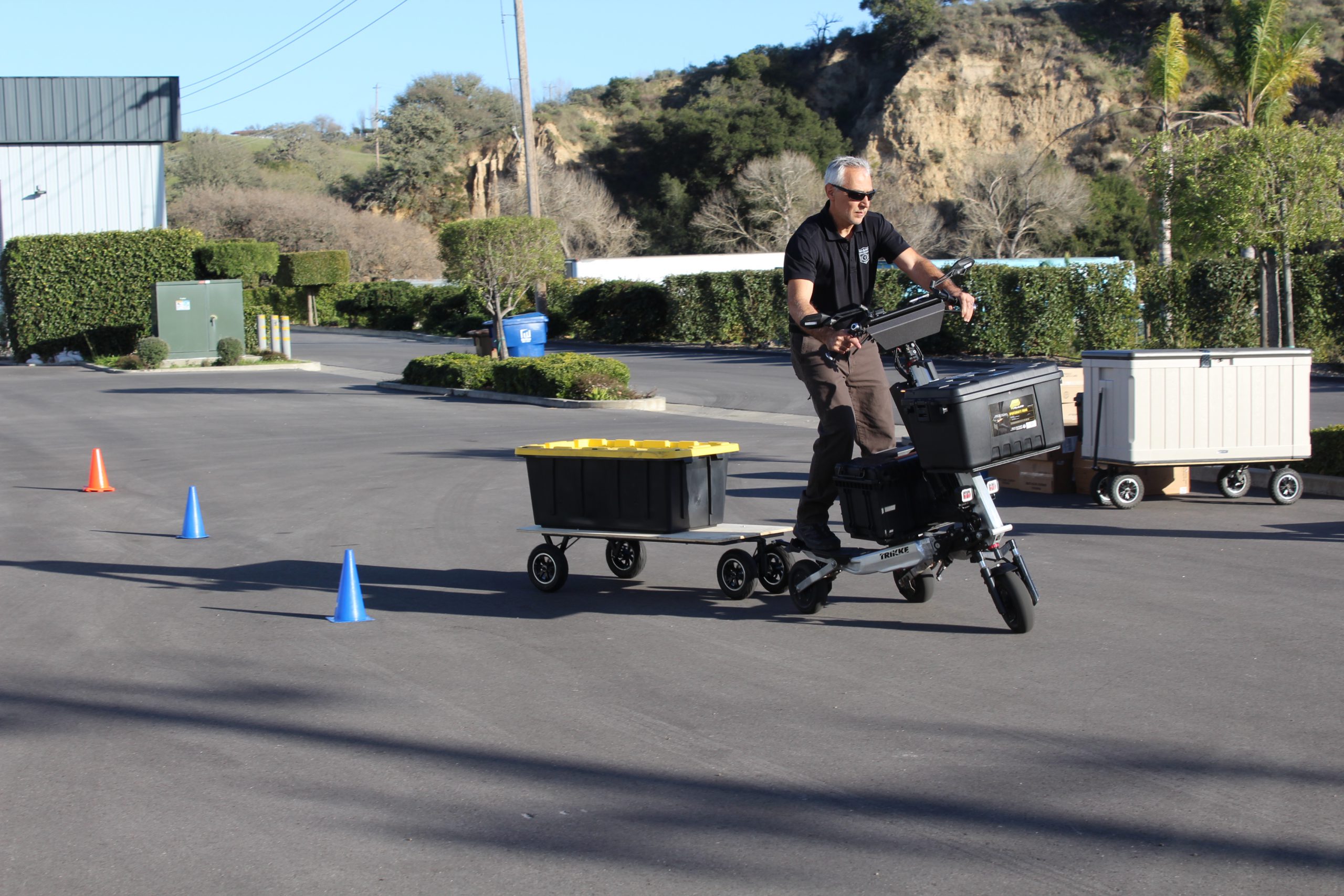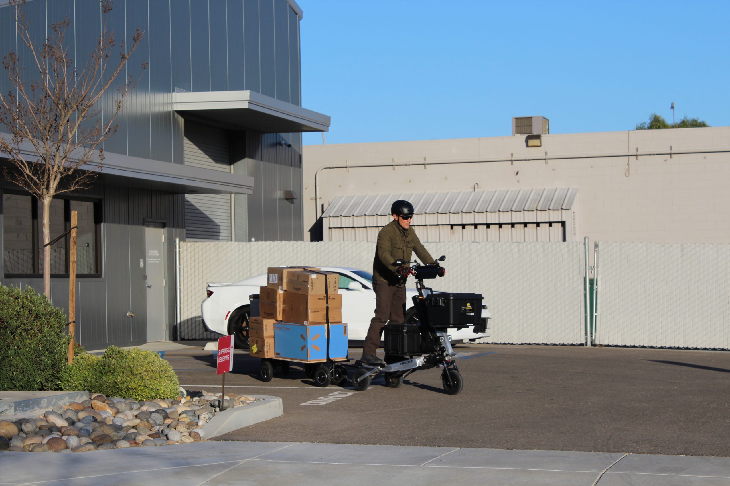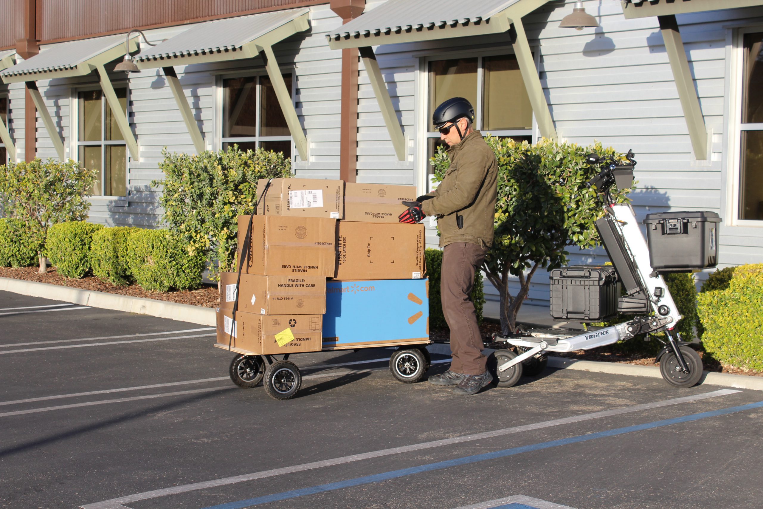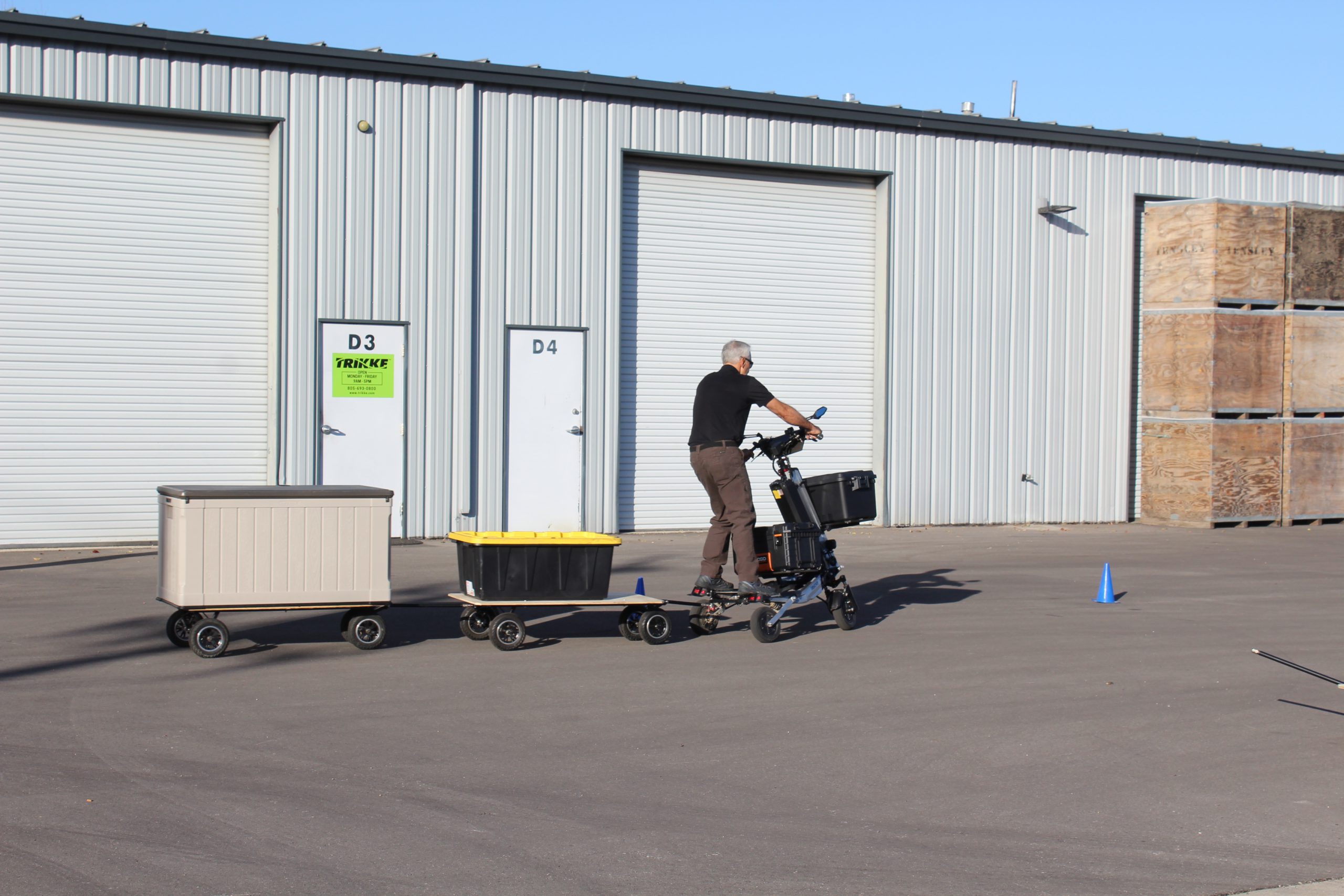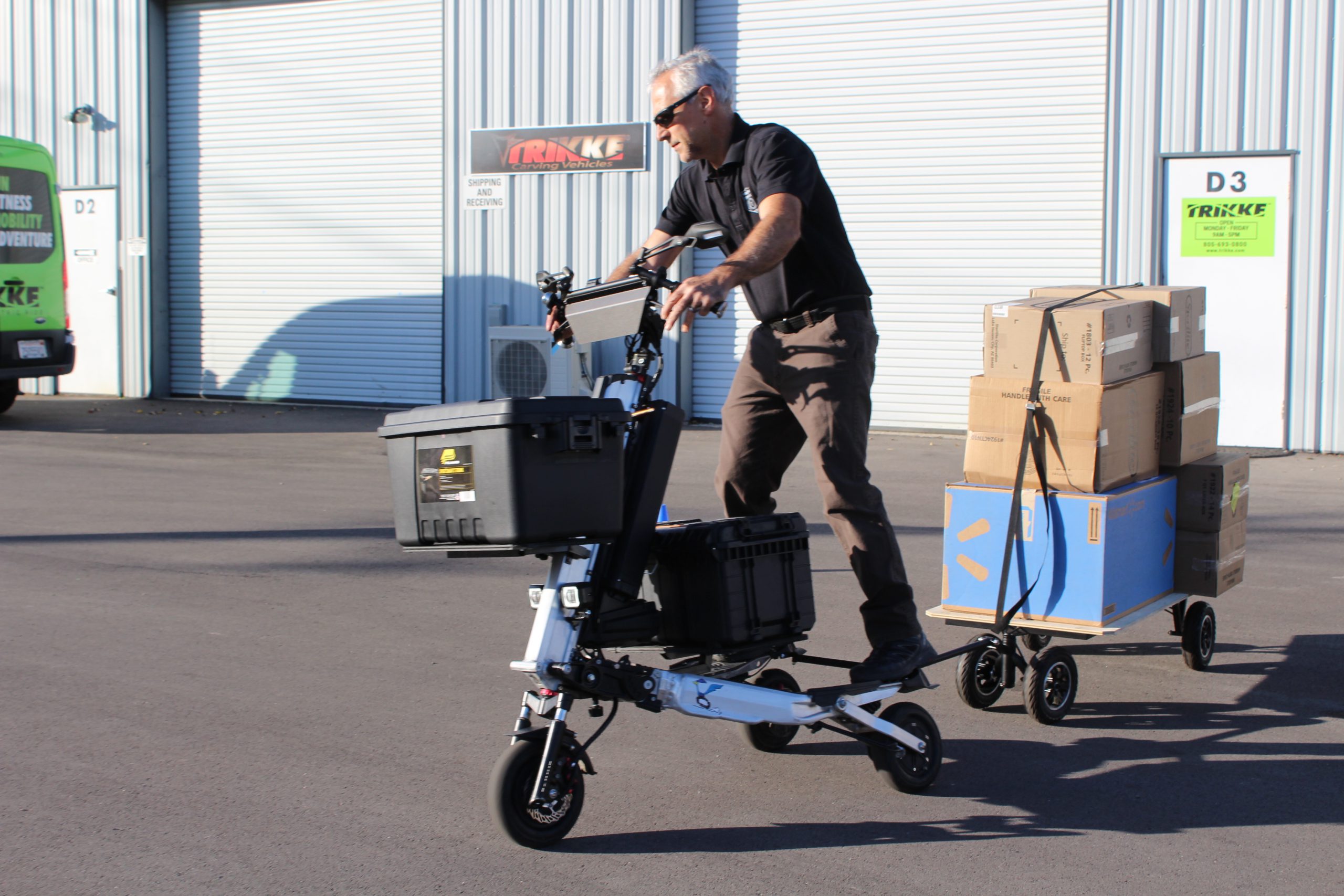 Dedykowana przyczepa tworzy system komunikacji towarowej nigdzie indziej nie występujący w żadnym innym Lekkim Pojazdem Elektrycznym. Takich zdolności przewozowych nie ma żaden rower cargo czy inne hulajnogi. Przyczepa posiada idealnie taki sam śladu jazdy za elektrycznym Trikke co daje gwarancję płynnej jazdy w najbardziej zatłoczonych przestrzeniach miejskich czy przemysłowych. To rozwiązanie usprawnia szybkie przewożenie wielkogabarytowych towarów. Idealne rozwiązanie w ograniczonych przestrzeniach miejskich czy przemysłowych dla firm logistycznych, transportu towarowego, spożywczego, dostawczego.