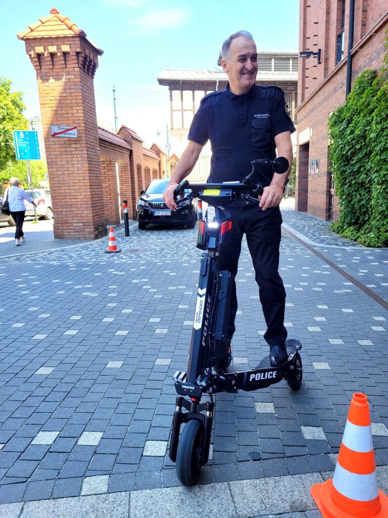 Dla Policja, dla Straż Miejska, dla Security. Kraków, patrolowy elektryczny Trikke.